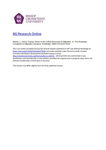 Newns, L. (2024) Tracing 'Home' in the Critical Discourse on Migration. In: The Routledge Companion to Migration Literature. Routledge, London. ISBN 9781003270409